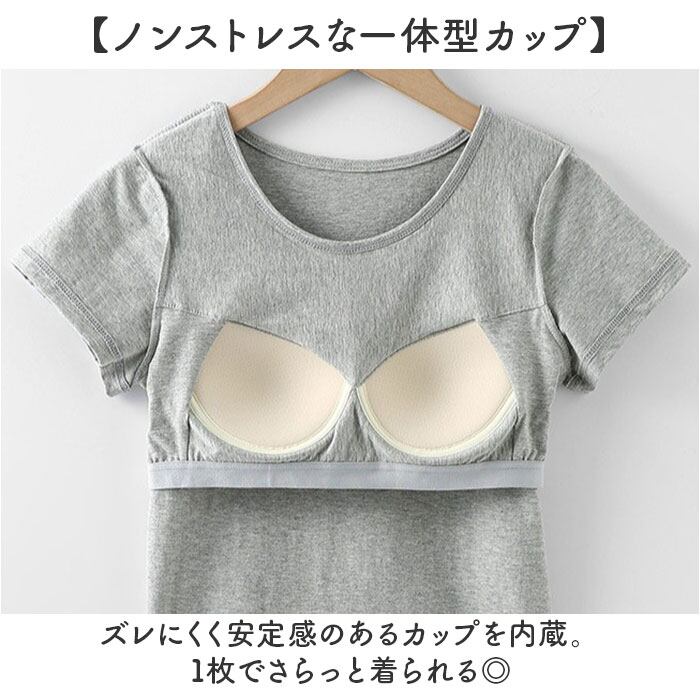 ・ズレにくく安定感のあるカップを内蔵。1枚でさらっと着られる◎
