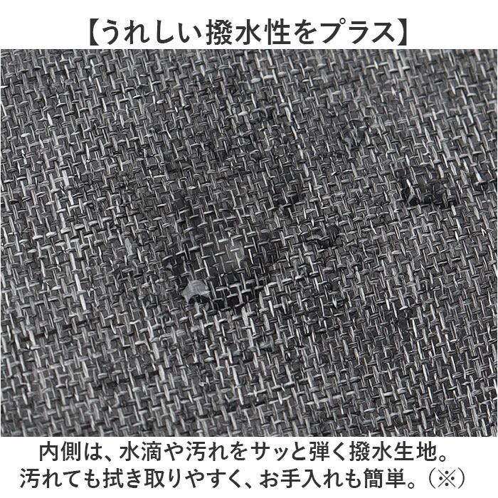 ・内側は、水滴や汚れをサッと弾く撥水生地。汚れても拭き取りやすく、お手入れも簡単。