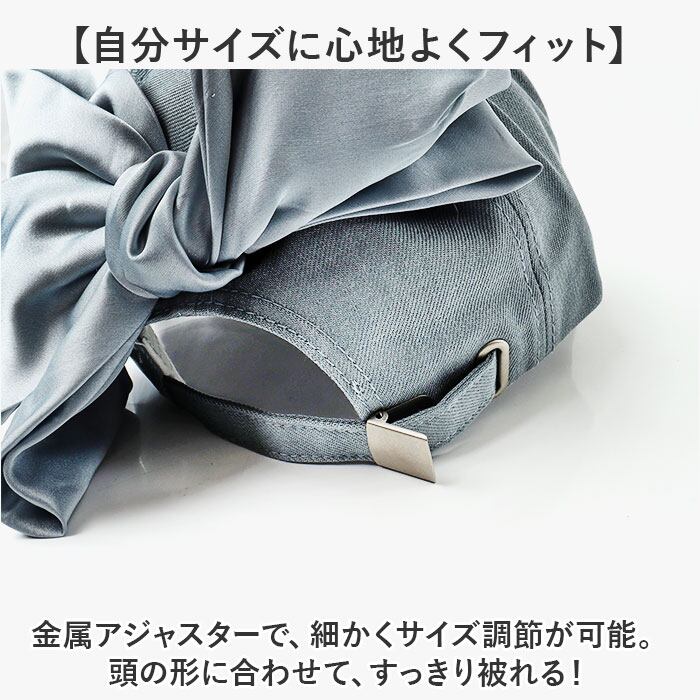 ・金属アジャスターで、細かくサイズ調節が可能。頭の形に合わせて、すっきり被れる!
