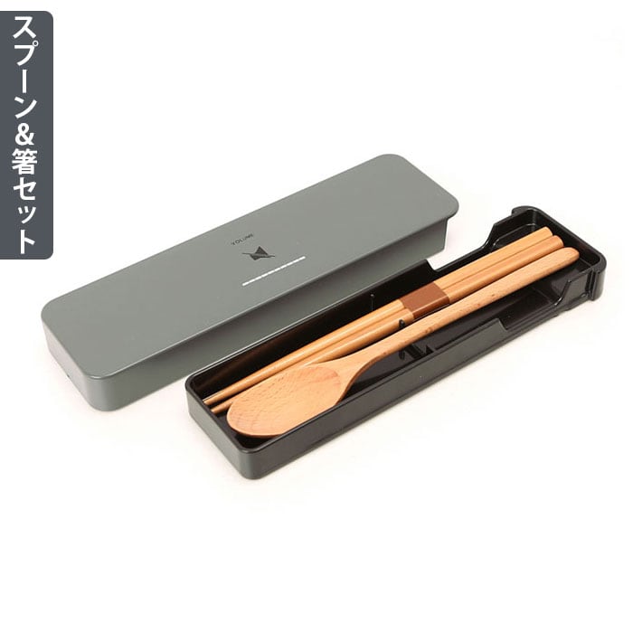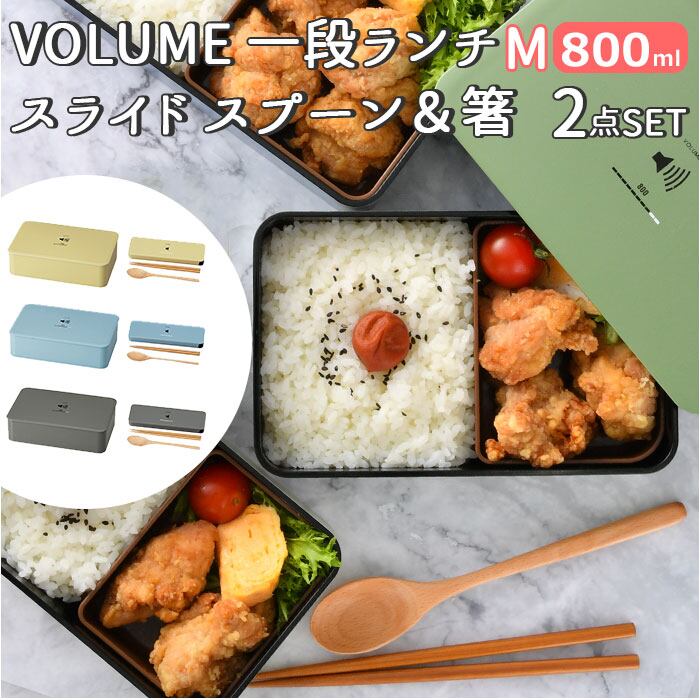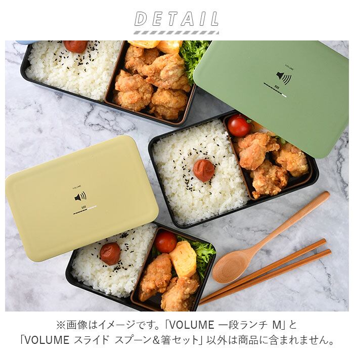 ・学校やオフィスに持って行きやすいシンプルなデザイン♪VOLUMEの一段ランチ Mサイズと、スプーン&箸セット 18cmタイプの2点セットが登場。