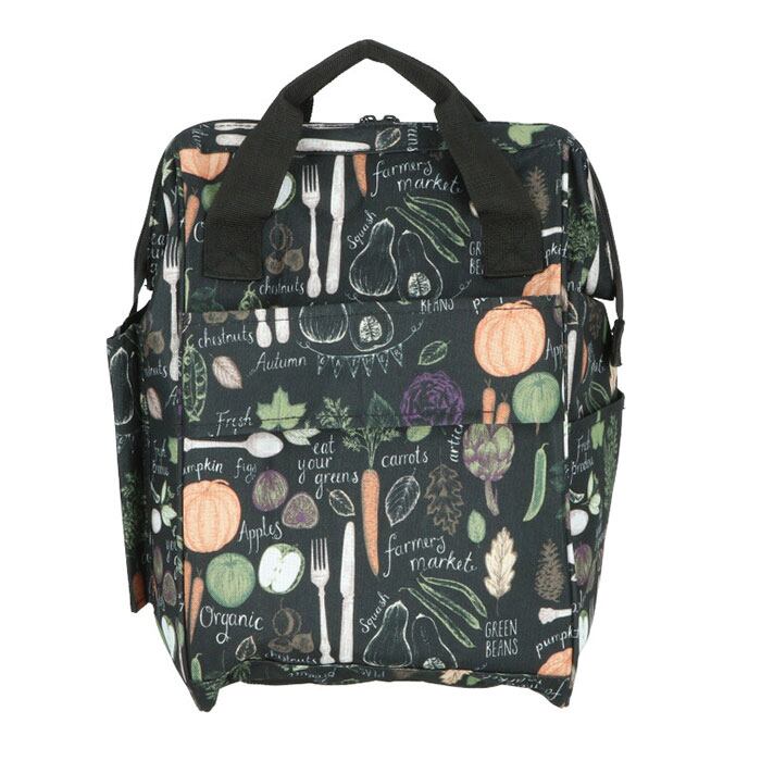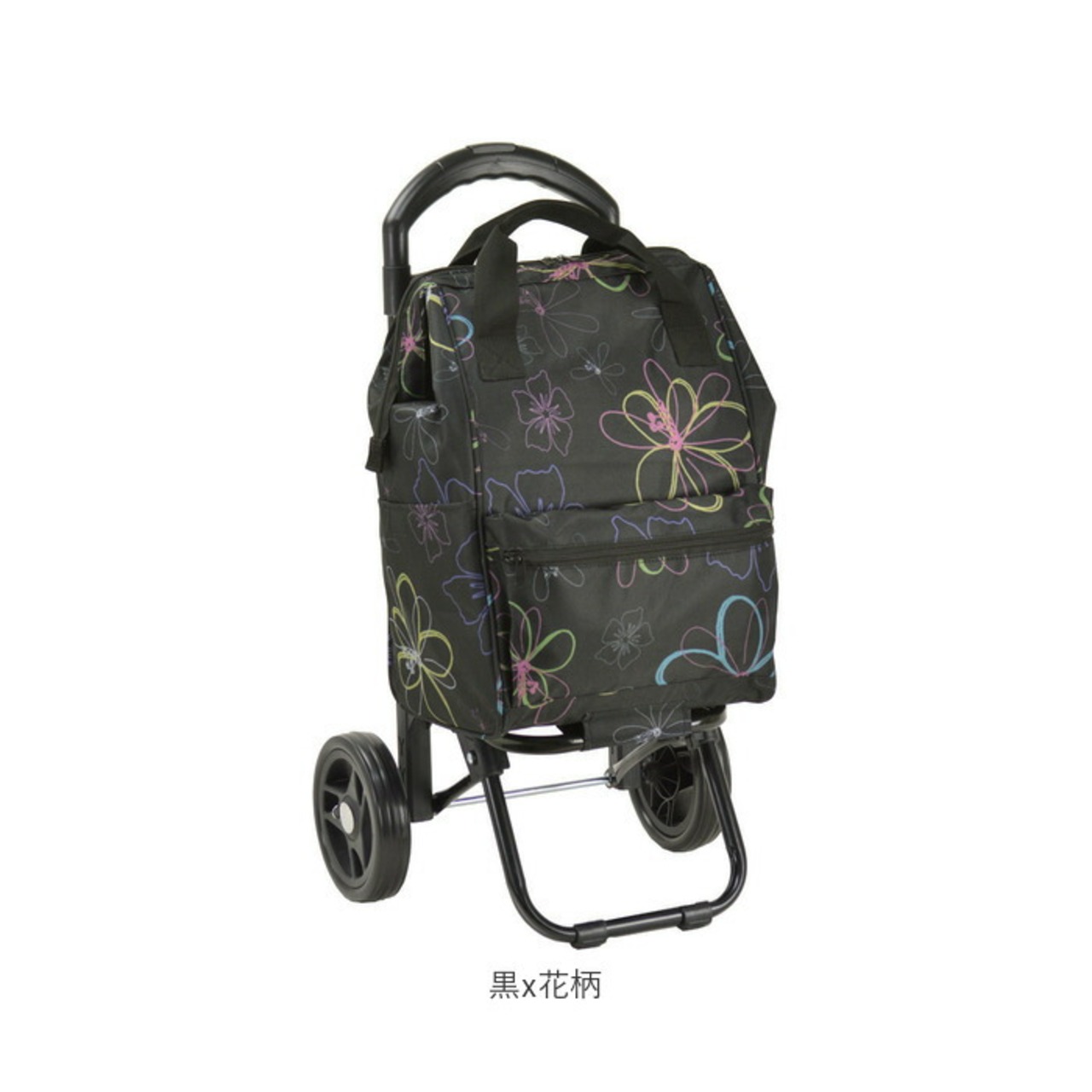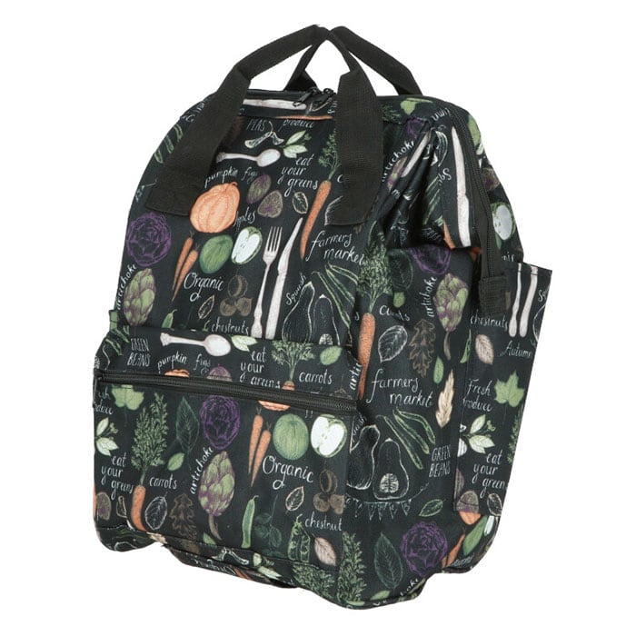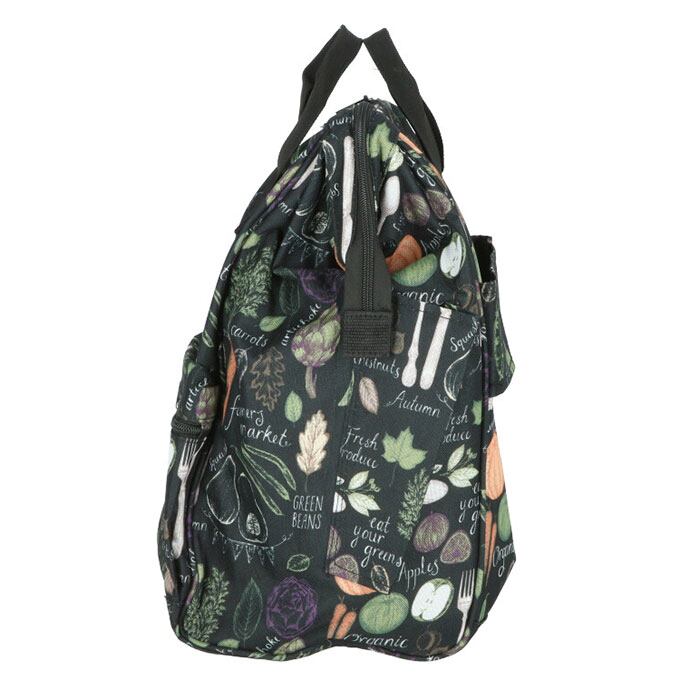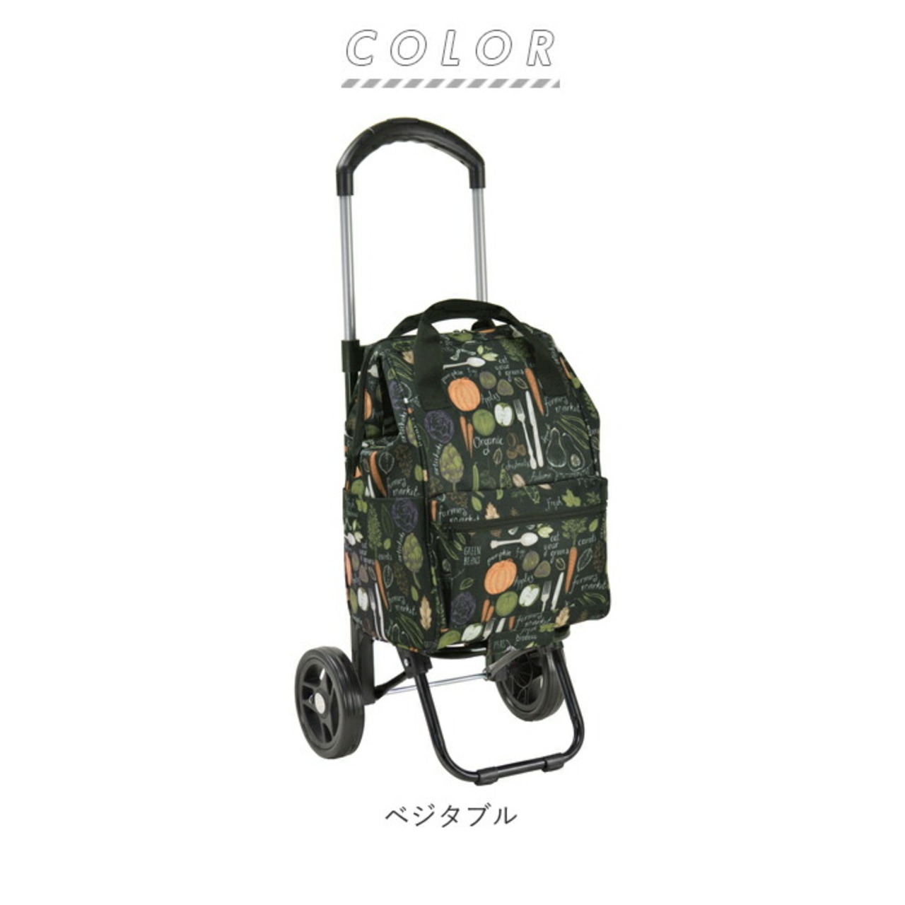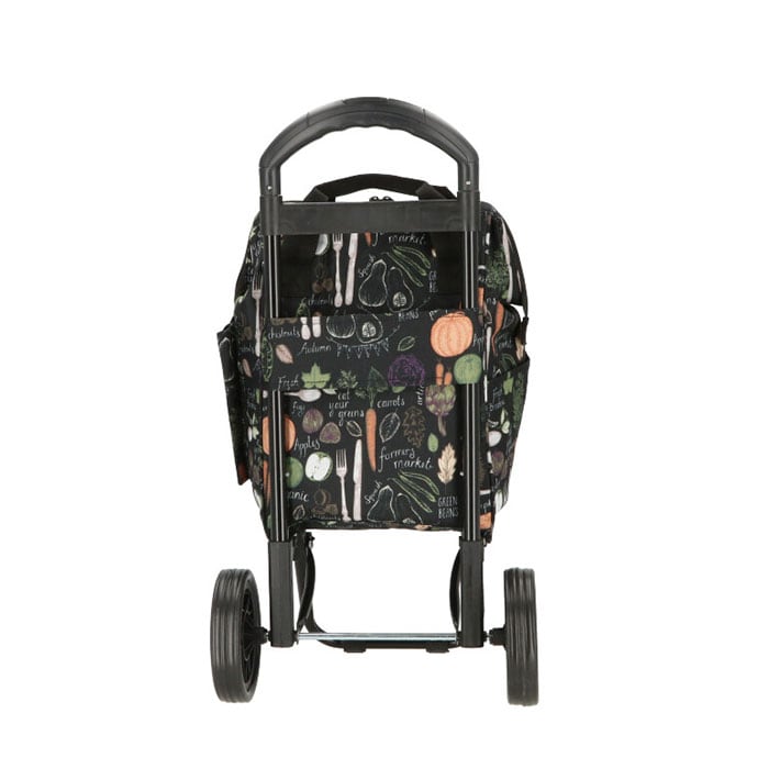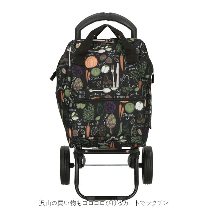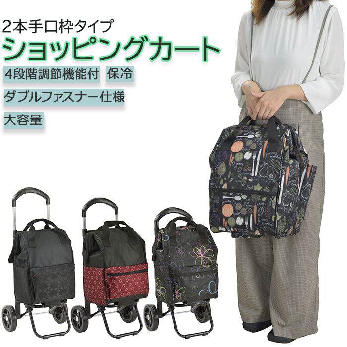 ・黒を基調にした生地にお花やベジタブルのパターン柄を合わせた、VALENTINO VISCANIのエレガントな保冷ショッピングカート(2本手口枠タイプ)が発売。