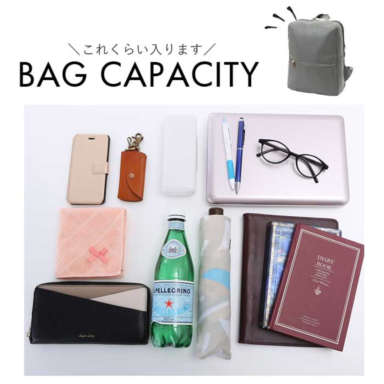 ・コンパクトな見た目だけどマチ幅がしっかりあり、スリムなお弁当箱やお直し用のコスメポーチまでお出かけに必要な小物をすっきりひとまとめ♪