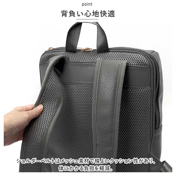 ・ショルダーベルトはメッシュ素材で程よいクッション性があり、体にかかる負担を軽減。
