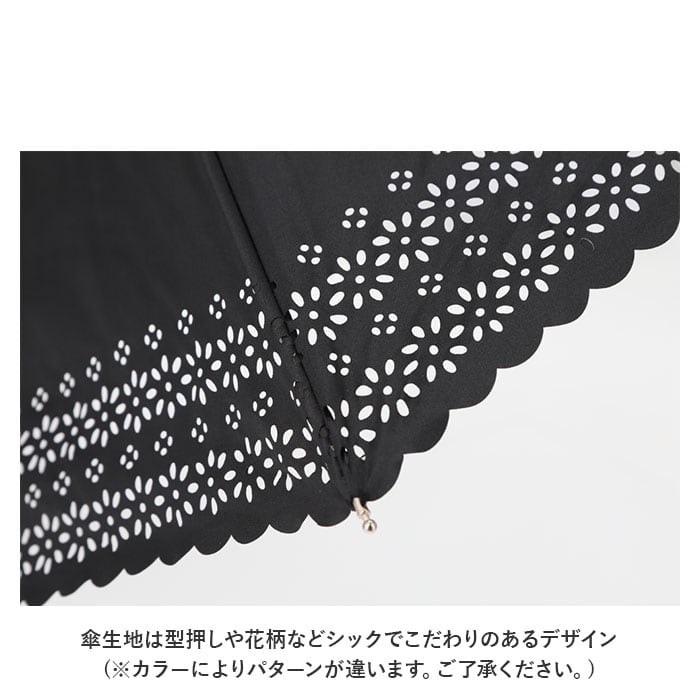 ・傘生地は型押しや花柄などシックでこだわりのあるデザイン(※カラーによりパターンが違います。ご了承ください。)