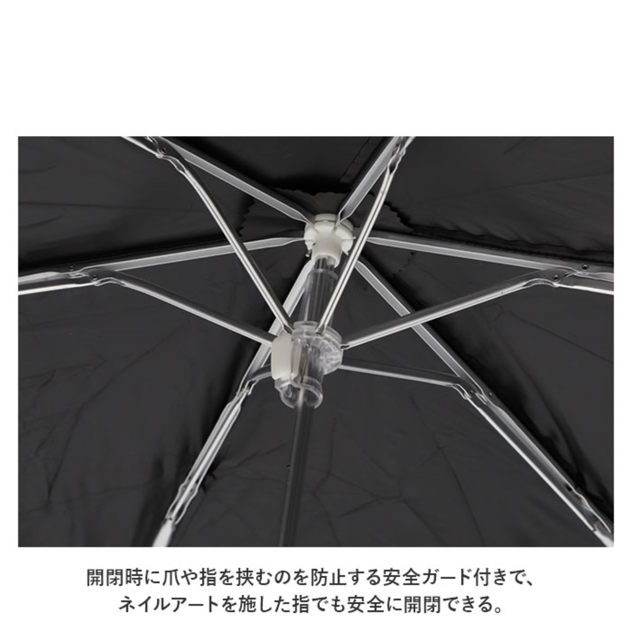 ・開閉時に爪や指を挟むのを防止する安全ガード付きで、ネイルアートを施した指でも安全に開閉できる。