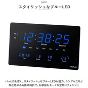 ・時間とカレンダー、温度を大きく表示。広いお部屋でも見やすい。ご自宅はもちろん、オフィスや店舗での使用もGOOD。