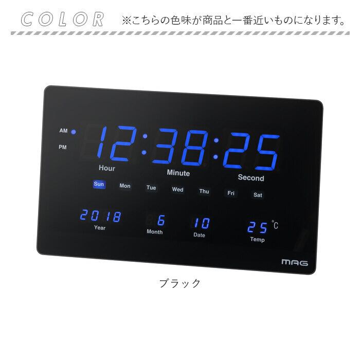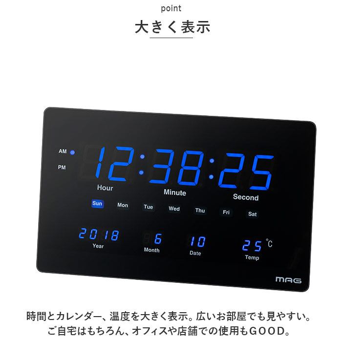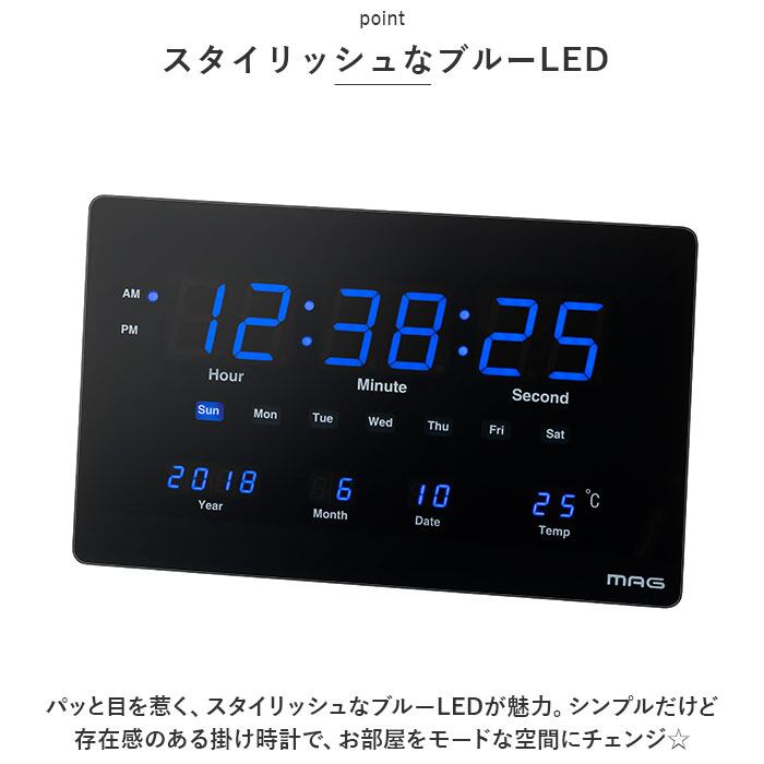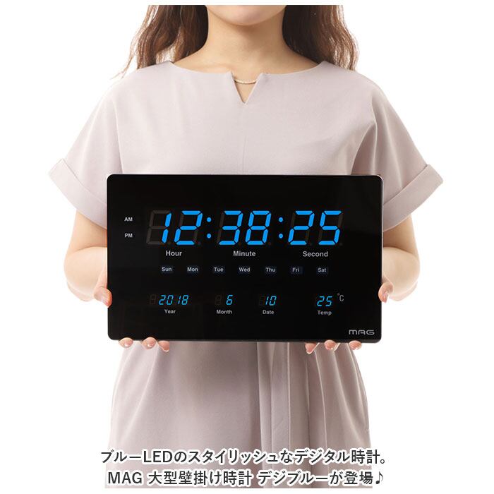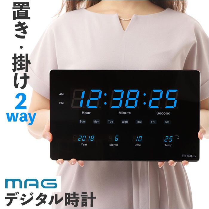 MAG 大型 壁掛け時計 置き時計 通販 置時計 掛け時計 置掛両用時計 テーブルクロック 時計 クロック 2WAY 置掛両用 掛け置き両用 薄型 LED スタンド付き カレンダー 温度 デジブルー おしゃれ