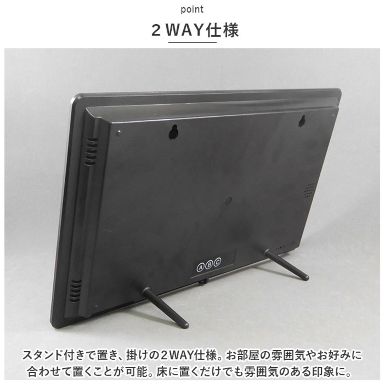・スタンド付きで置き、掛けの2WAY仕様。お部屋の雰囲気やお好みに合わせて置くことが可能。床に置くだけでも雰囲気のある印象に。