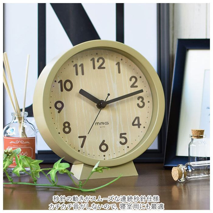 ・秒針の動きがスムーズな連続秒針仕様。カチカチ音がしないので、寝室用にも最適。