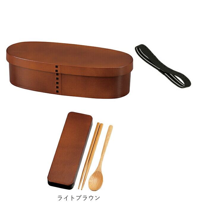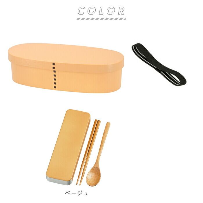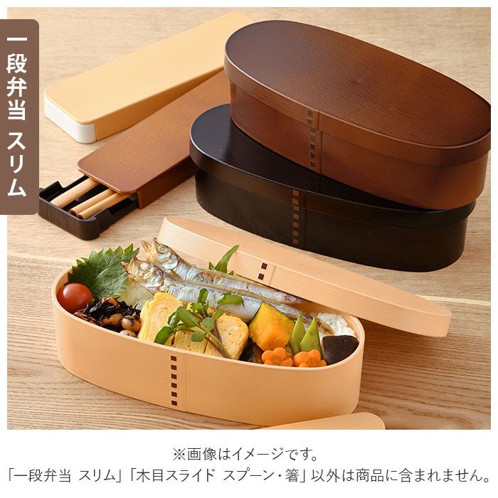 曲げわっぱ風 一段弁当 スリム&木目スライド スプーン・箸 18cm