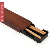 ・木製のカトラリーの雰囲気にマッチする木目調ケースは、スライド式で取り出しスムーズ。