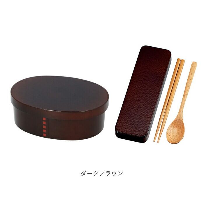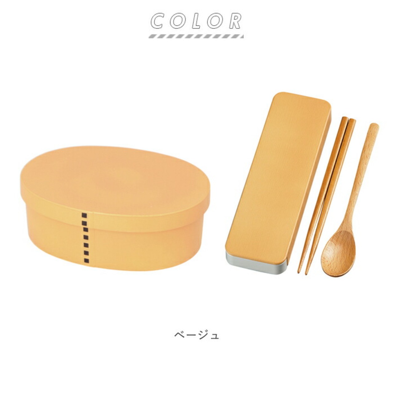 曲げわっぱ風 一段弁当 小&木目スライド スプーン・箸2点セット