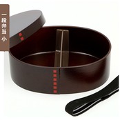 ・昔懐かしい、まるで曲げわっぱのような質感のお弁当箱!漆器職人が手塗りで仕上げた一段弁当箱「小」に、木目調カトラリーセットを合わせたお得な2点セット!