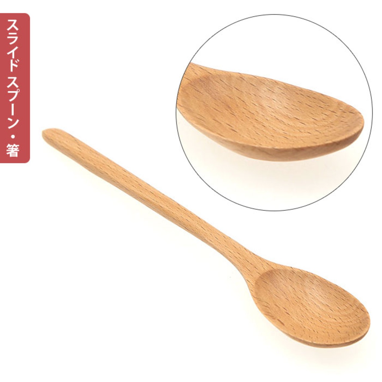 ・スプーンとお箸は、ナチュラルな天然木素材。先端は口当たりの優しい丸みを帯びたフォルムで、お子様から大人まで誰でも使いやすいのが嬉しいポイント。