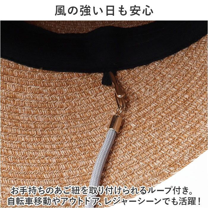 ・お手持ちのあご紐を取り付けられるループ付き。自転車移動やアウトドア、レジャーシーンでも活躍!