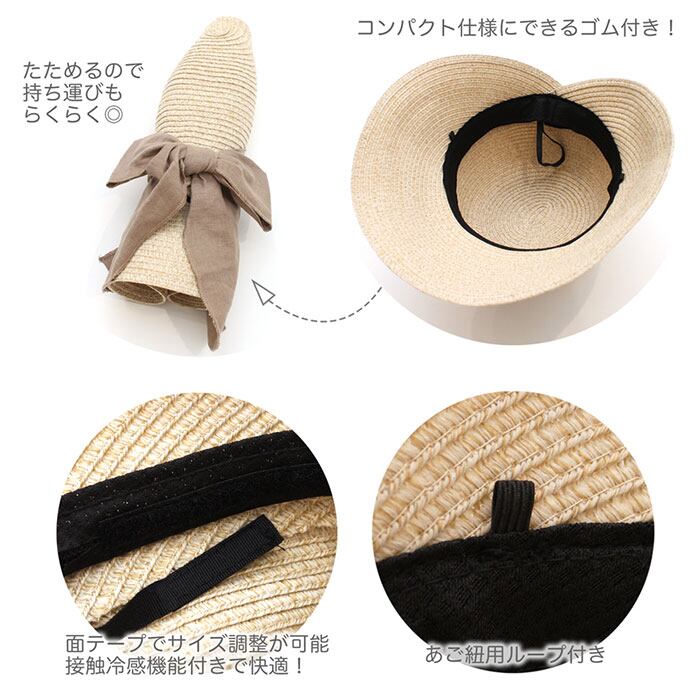 帽子 レディース 女優帽 通販 ハット 手洗い ウォッシャブル ゴム 日除け 日よけ ひんやり 冷感 接触冷感 バッグリボン リボン 大きい きれいめ コンパクト 持ち運び 夏 快適 汗止め テープ 上品 かわいい 可愛い シンプル カジュアル おしゃれ