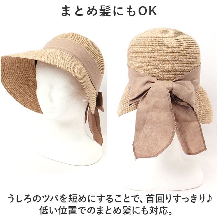 ・うしろのツバを短めにすることで、首回りすっきり♪低い位置でのまとめ髪にも対応。