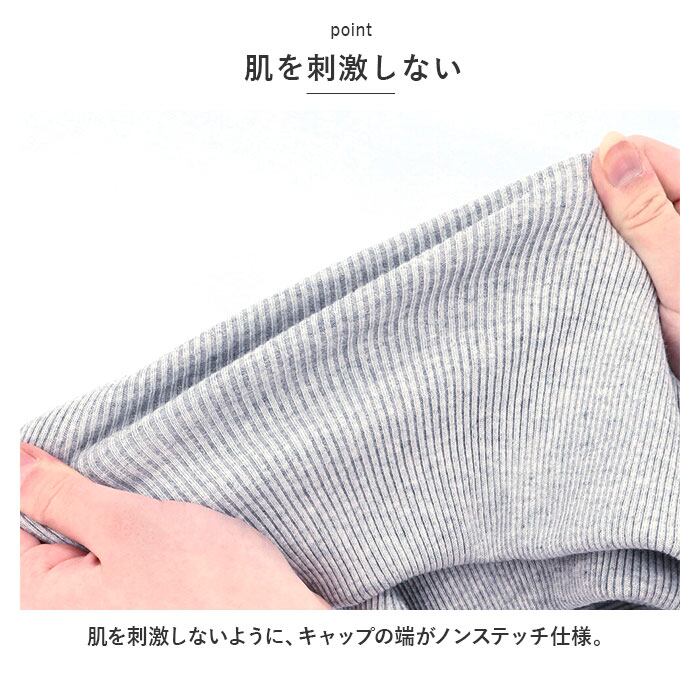 ・肌を刺激しないように、キャップの端がノンステッチ仕様。