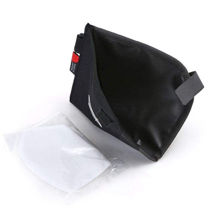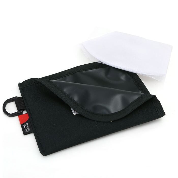 ・ケースは面ファスナー仕様で簡単開閉。中身がガバっと開くのでマスクの取り出しがしやすい。