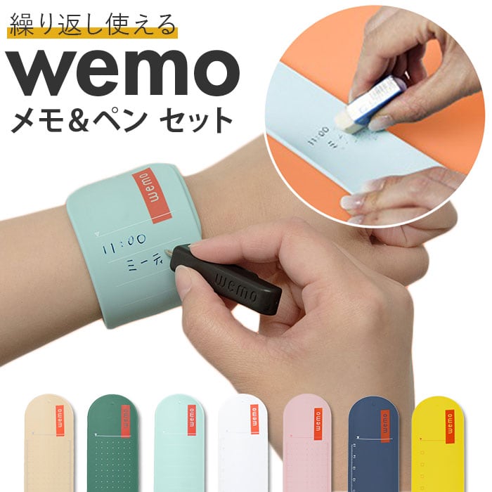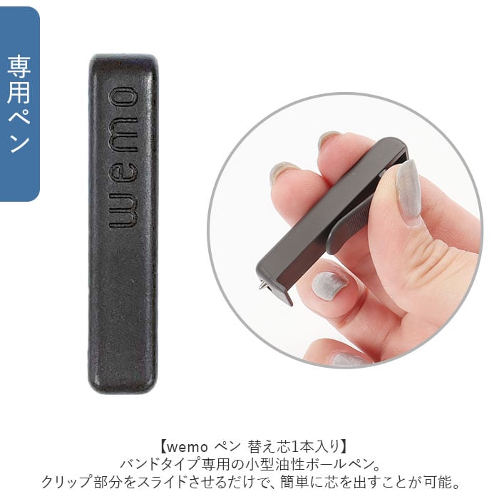 wemo ウェモ メモバンド ペン 替芯付き 通販 セット メモ ウェアラブルメモ バンドタイプ バンドタイプ専用ペン wemoペン ペン1本 腕に巻く 身に着ける 文具 便利 エコ 繰り返し使える ギフト 贈り物