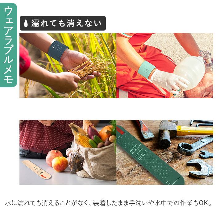 ・「いつでも・どこでも・書ける・思い出せる」をコンセプトに、腕に巻いて使用できるメモ「ウェアラブルメモ」。バンドタイプとペンのセット♪