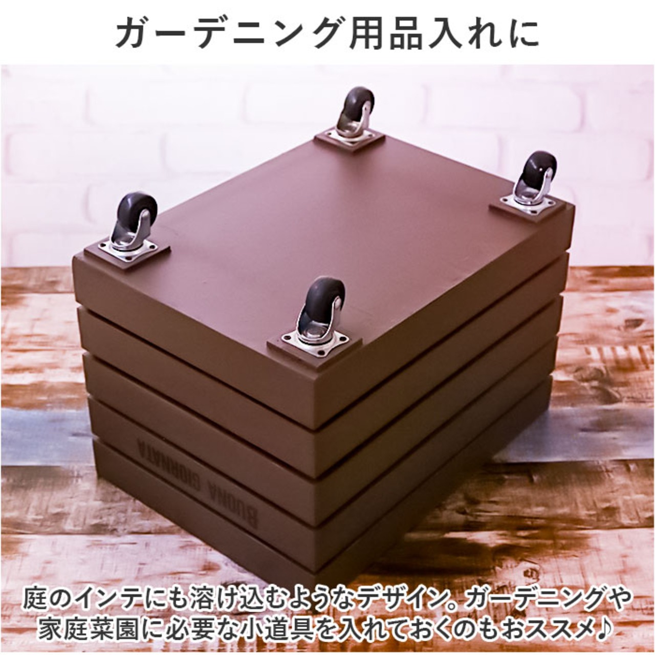 ・庭のインテにも溶け込むようなデザイン。ガーデニングや家庭菜園に必要な小道具を入れておくのもおススメ♪