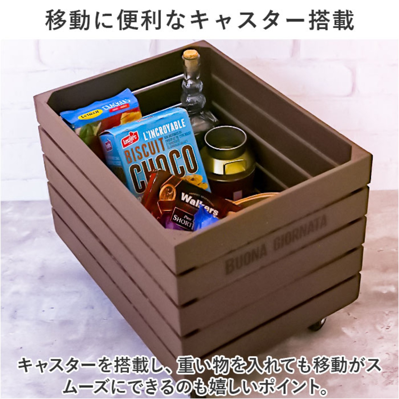 ・キャスターを搭載し、重い物を入れても移動がスムーズにできるのも嬉しいポイント。