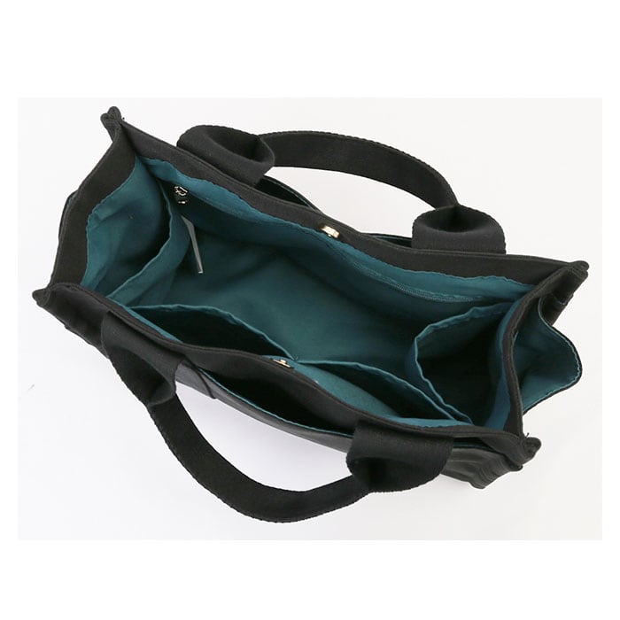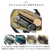 ・シンプルながら、チラ見えする配色やアシンメトリーなデザインが目を引く手頃なサイズ感のトートバッグは、ファッションコーデのアクセントにも◎
