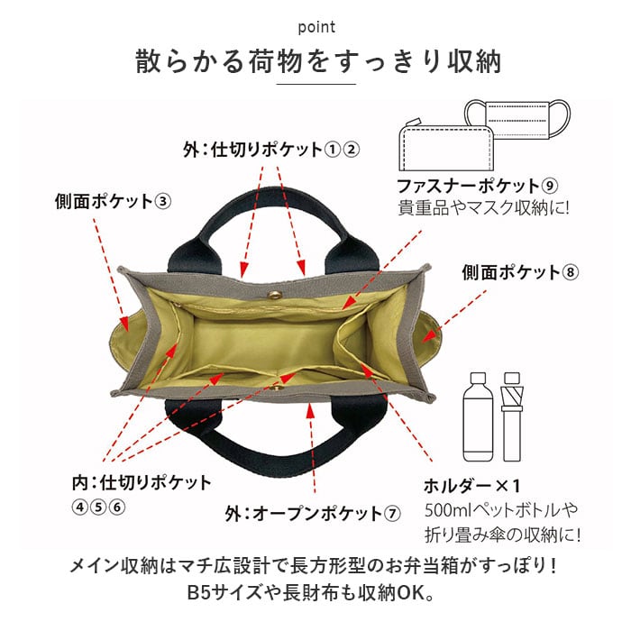 トートバッグ 小さめ 通販 トートバック カジュアルバッグ カジュアルバック トート 手持ち ポケット たくさん ボトルホルダー 小さい ミニ 収納 デザイン カジュアル かわいい 無地