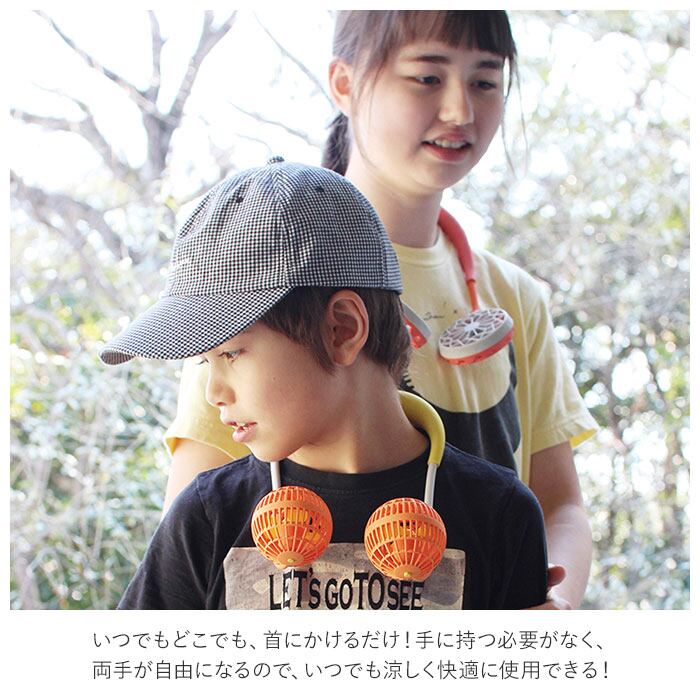・いつでもどこでも、首にかけるだけ!手に持つ必要がなく、両手が自由になるので、いつでも涼しく快適に使用できる!