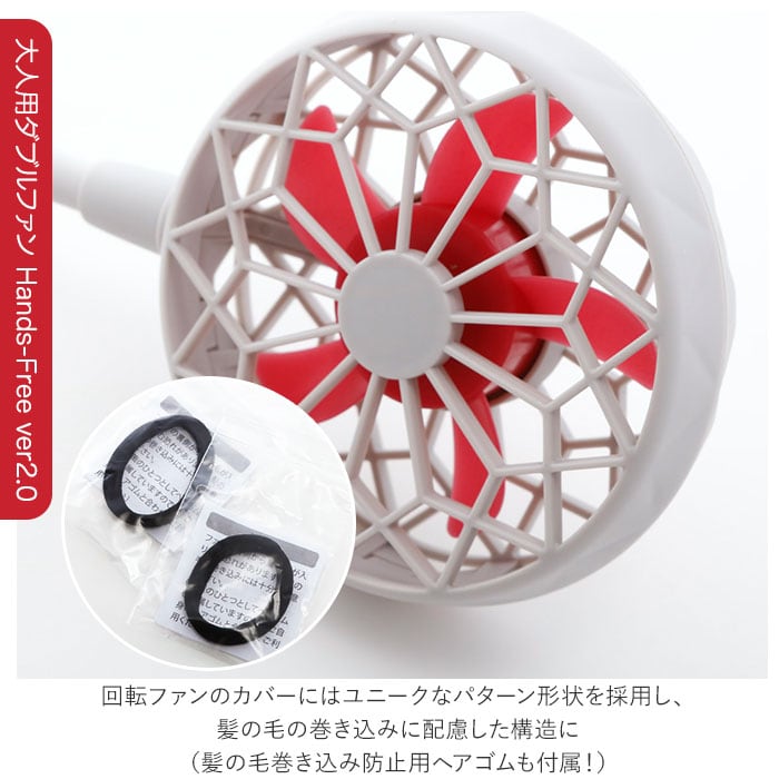 ・回転ファンのカバーにはユニークなパターン形状を採用し、髪の毛の巻き込みに配慮した構造に。(髪の毛巻き込み防止用ヘアゴムも付属!)