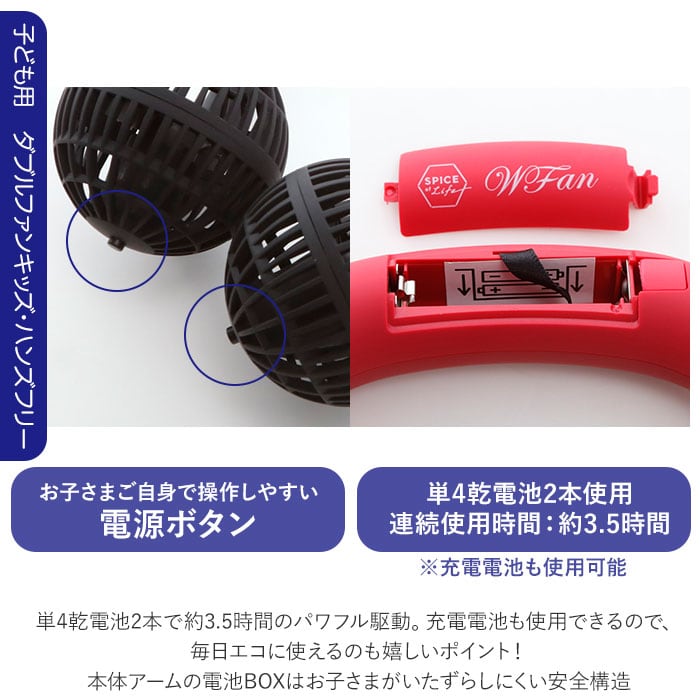 ※ダブルファンキッズは単四電池2本使用(電池は付属しません。)