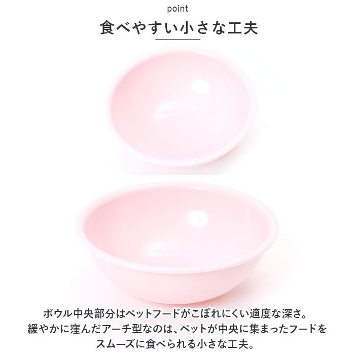・ボウル中央部分はペットフードがこぼれにくい適度な深さ。緩やかに窪んだアーチ型なのは、ペットが中央に集まったフードをスムーズに食べられる小さな工夫。