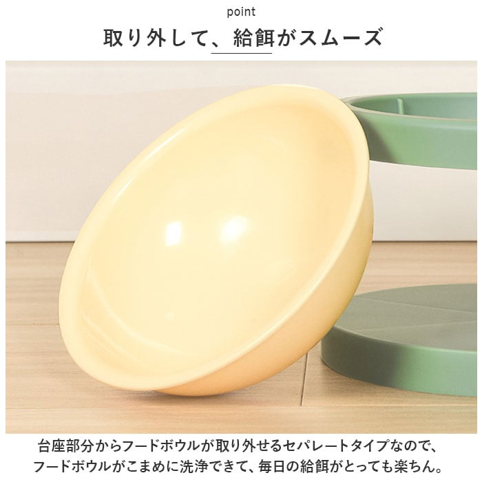 ・台座部分からフードボウルが取り外せるセパレートタイプなので、フードボウルがこまめに洗浄できて、毎日の給餌がとっても楽ちん。