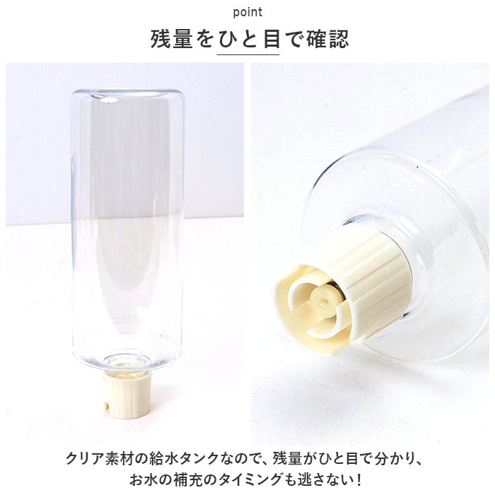 ・クリア素材の給水タンクなので、残量がひと目で分かり、お水の補充のタイミングも逃さない!