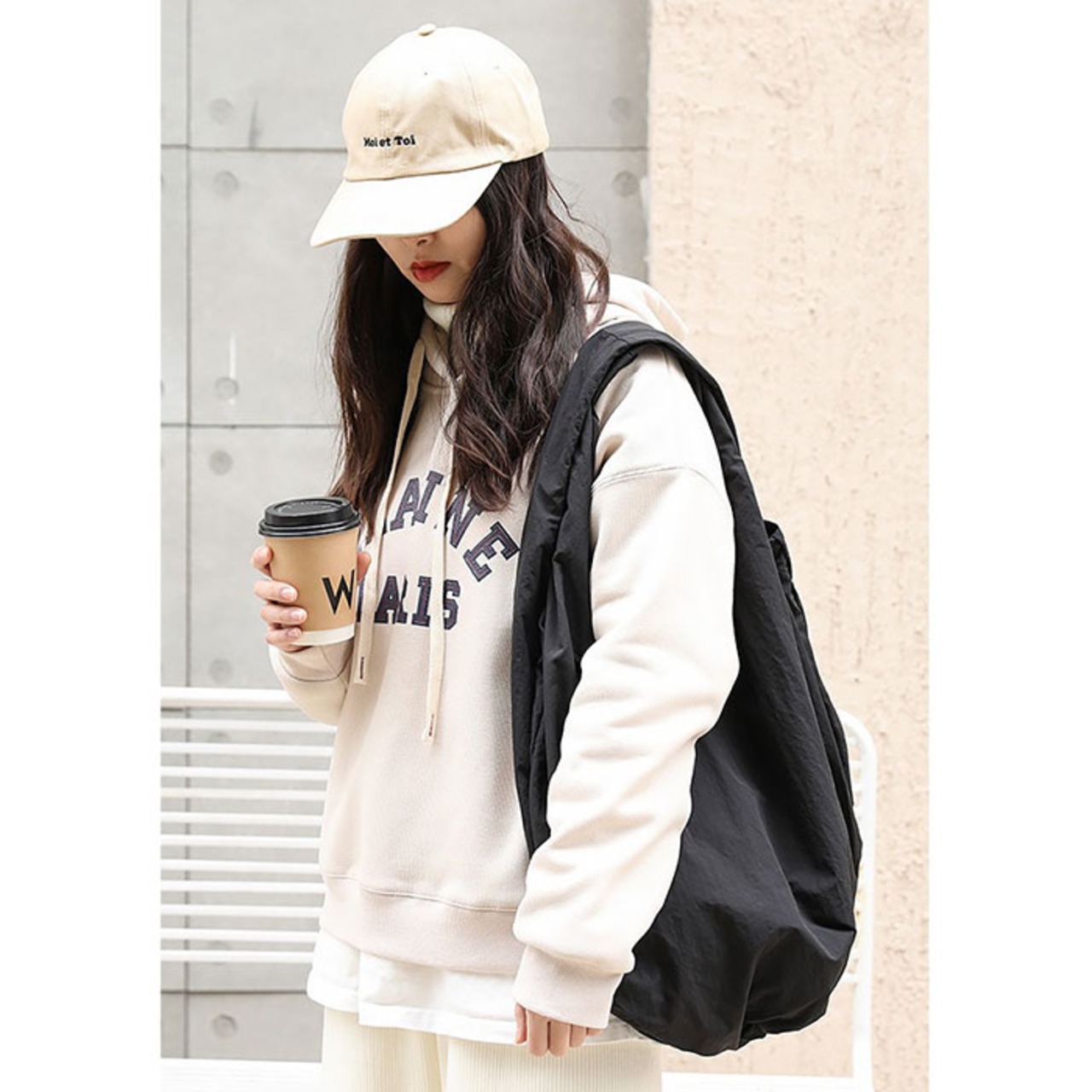 ・ハンドルは肩に掛けやすいゆとりのある作り。コートなどアウターを着ている時でも肩掛けOK