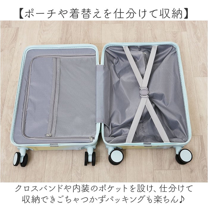 ・クロスバンドや内装のポケットを設け、仕分けて収納できごちゃつかずパッキングも楽ちん♪