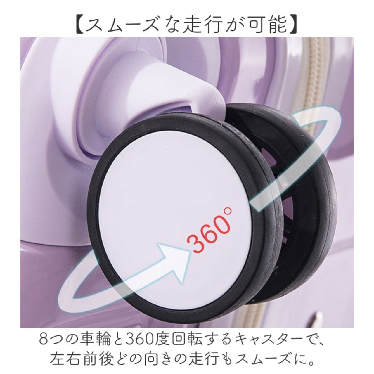 8つの車輪と360度回転するキャスターで、左右前後どの向きの走行もスムーズに。
