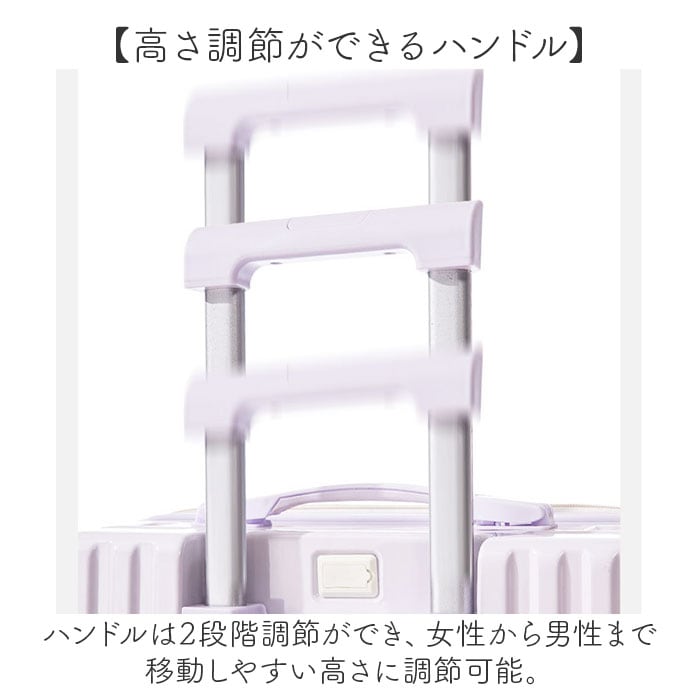 ・ハンドルは2段階調節ができ、女性から男性まで移動しやすい高さに調節可能。