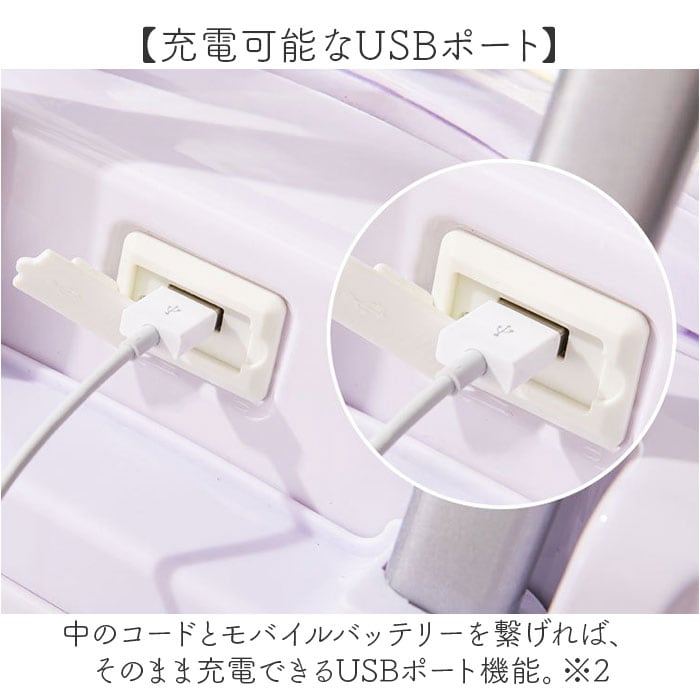・中のコードとモバイルバッテリーを繋げれば、そのまま充電できるUSBポート機能。※2