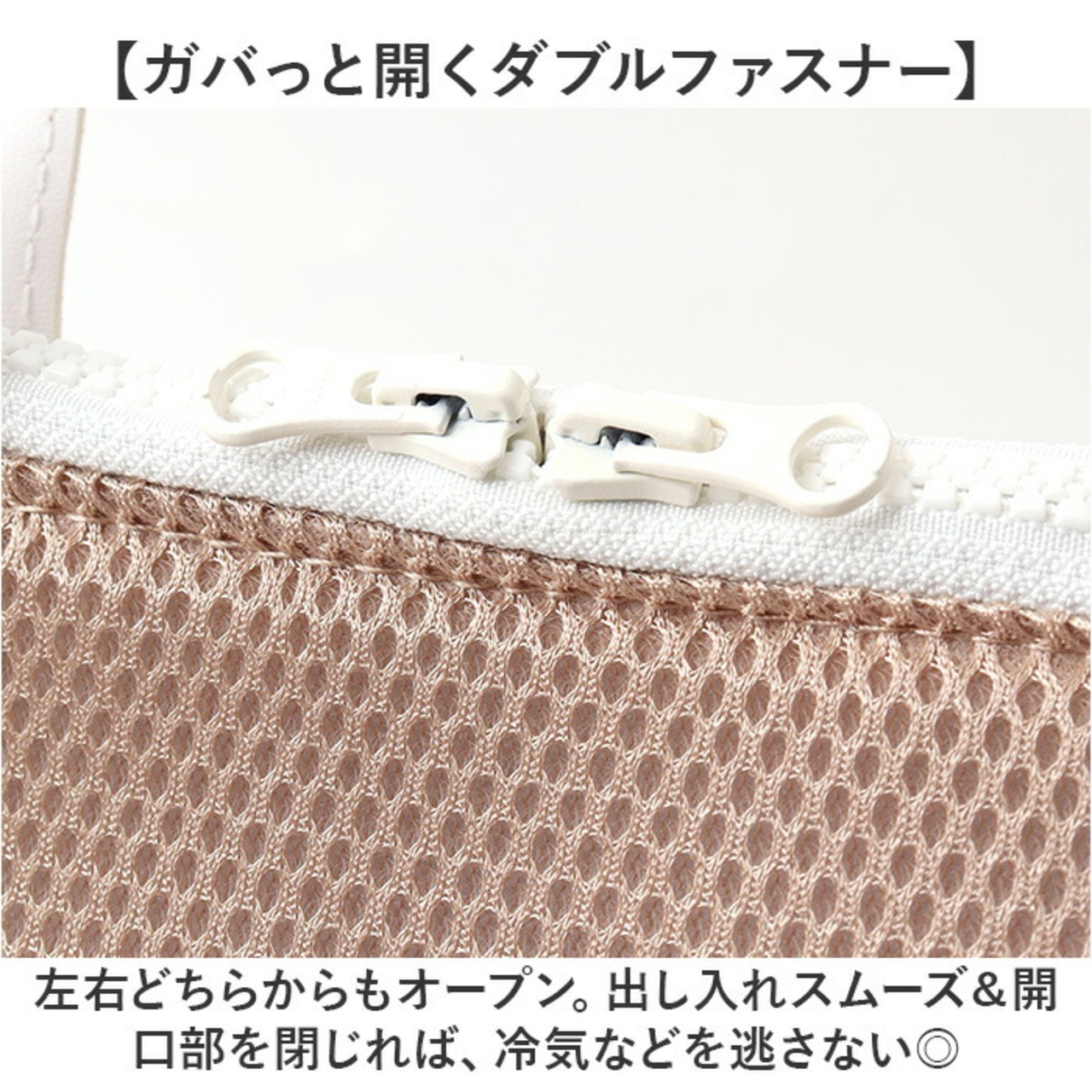 【ガバっと開くダブルファスナー】