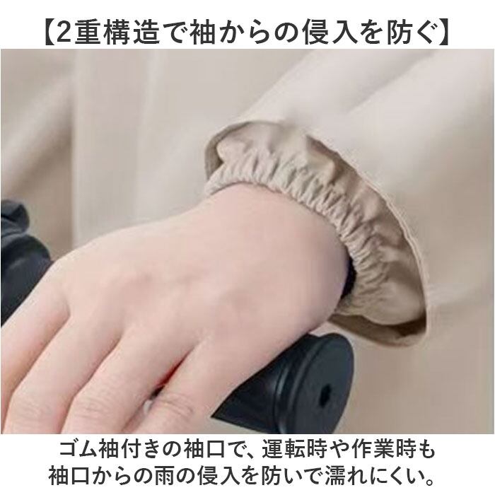 ・ゴム袖付きの袖口で、運転時や作業時も袖口からの雨の侵入を防いで濡れにくい。
