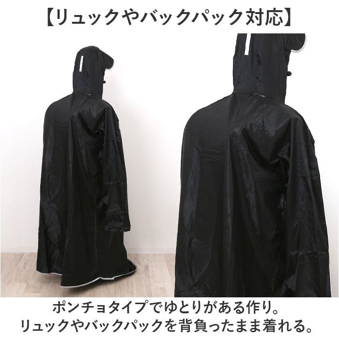 ・ポンチョタイプでゆとりがある作り。リュックやバックパックを背負ったまま着れる。
