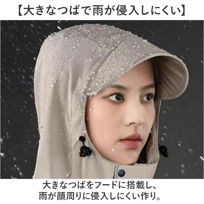 ・大きなつばをフードに搭載し、雨が顔周りに侵入しにくい作り。