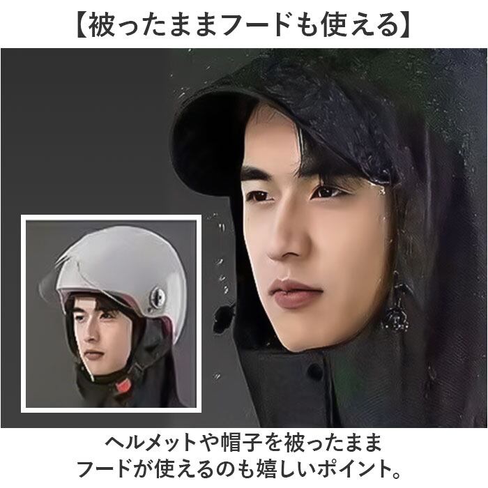 ・ヘルメットや帽子を被ったままフードが使えるのも嬉しいポイント。