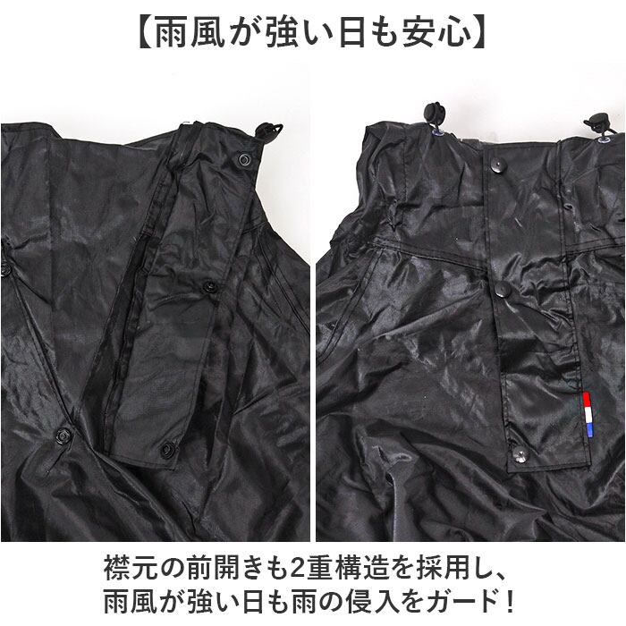 ・襟元の前開きも2重構造を採用し、雨風が強い日も雨の侵入をガード!