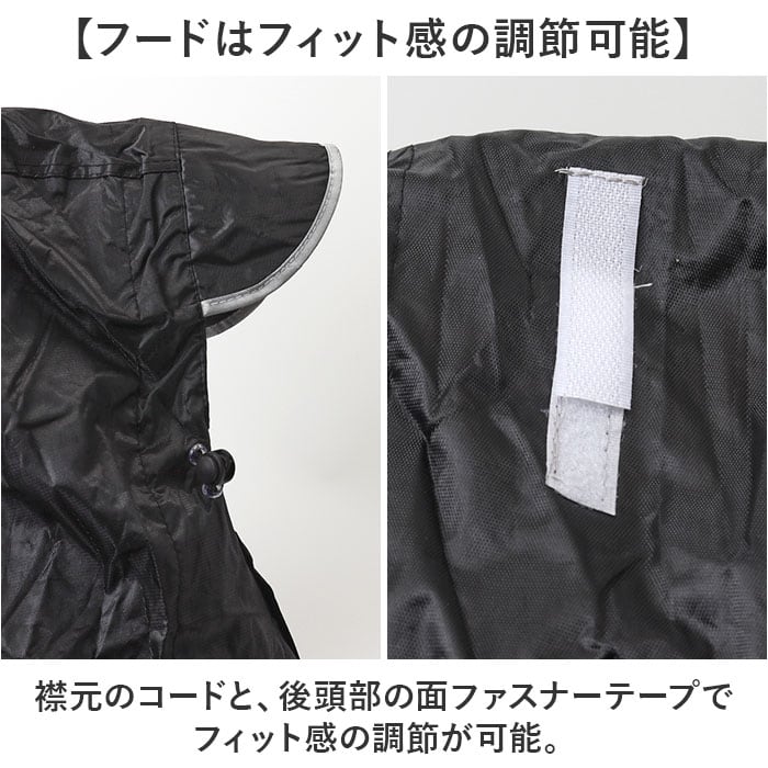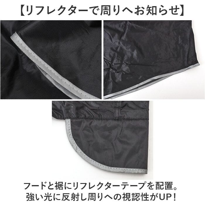 ・フードと裾にリフレクターテープを配置。強い光に反射し周りへの視認性がUP!