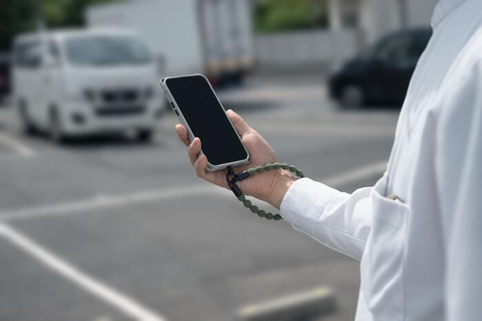 ・伸びる紐を採用(スマート決済がラクラク!)