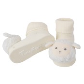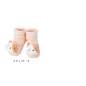 ・靴下の名産地・奈良県の工場で一つひとつ丁寧に作られた日本製で、肌ざわりの良い素材が赤ちゃんの足をふんわりと包み込む。さらに、L字型の加工で脱げにくく、足裏には滑り止め付き。履き心地がよく、安全性にも配慮されている。(※非歩行用。)