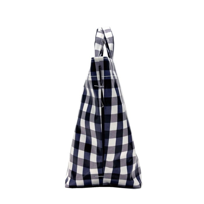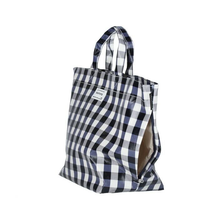 ・艶のあるラミネート加工生地。燃やしても有害物質の発生が少ないラミネート素材を使用しています。汚れや水滴が拭き取りやすいのもうれしいポイント。